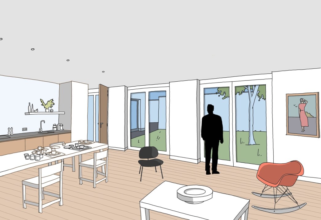 Aan de Huyterstraat in Delft hebben wij een Kangoeroewoning ontworpen. Deze woning is een combinatie van twee zelfstandige wooneenheden: een deel voor een gezin met twee kinderen en een deel voor een meervoudig gehandicapte broer. De woning wordt gerealiseerd op een achtergelegen perceel. Een veilige en besloten plek voor zowel het gezin als de broer van de opdrachtgeefster.