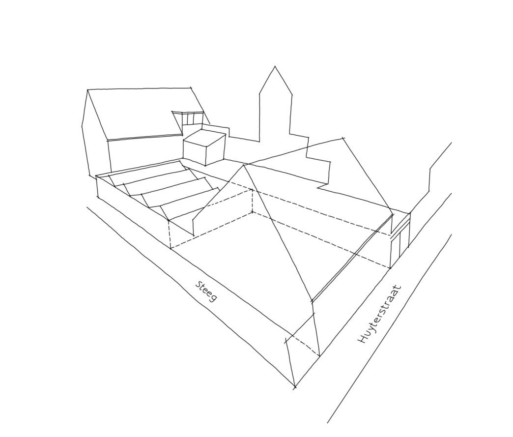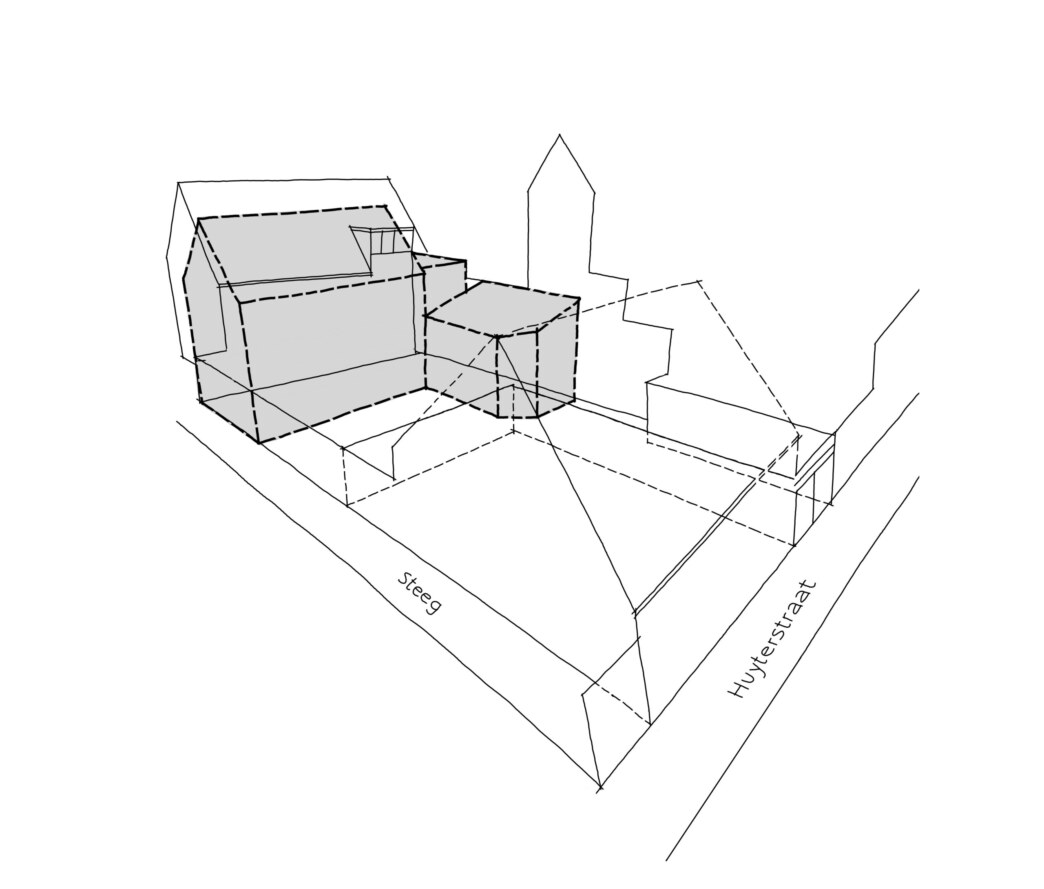 Het doel van het ontwerp is om een huis te maken dat zich nestelt in zijn omgeving. De woning ligt verborgen in de binnenwereld van het bouwblok aan de Brabantse Turfmarkt. Hoogtes en de vormen van het bouwvolume zijn afgestemd op de hoogtes van de omliggende bebouwing. Met materiaal en kleur wordt een subtiel contrast gemaakt met de bestaande bebouwing (zink en wit pleisterwerk).